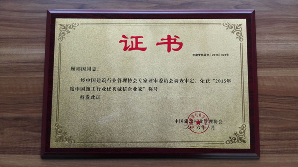 2016年度全国建筑业优秀企业家